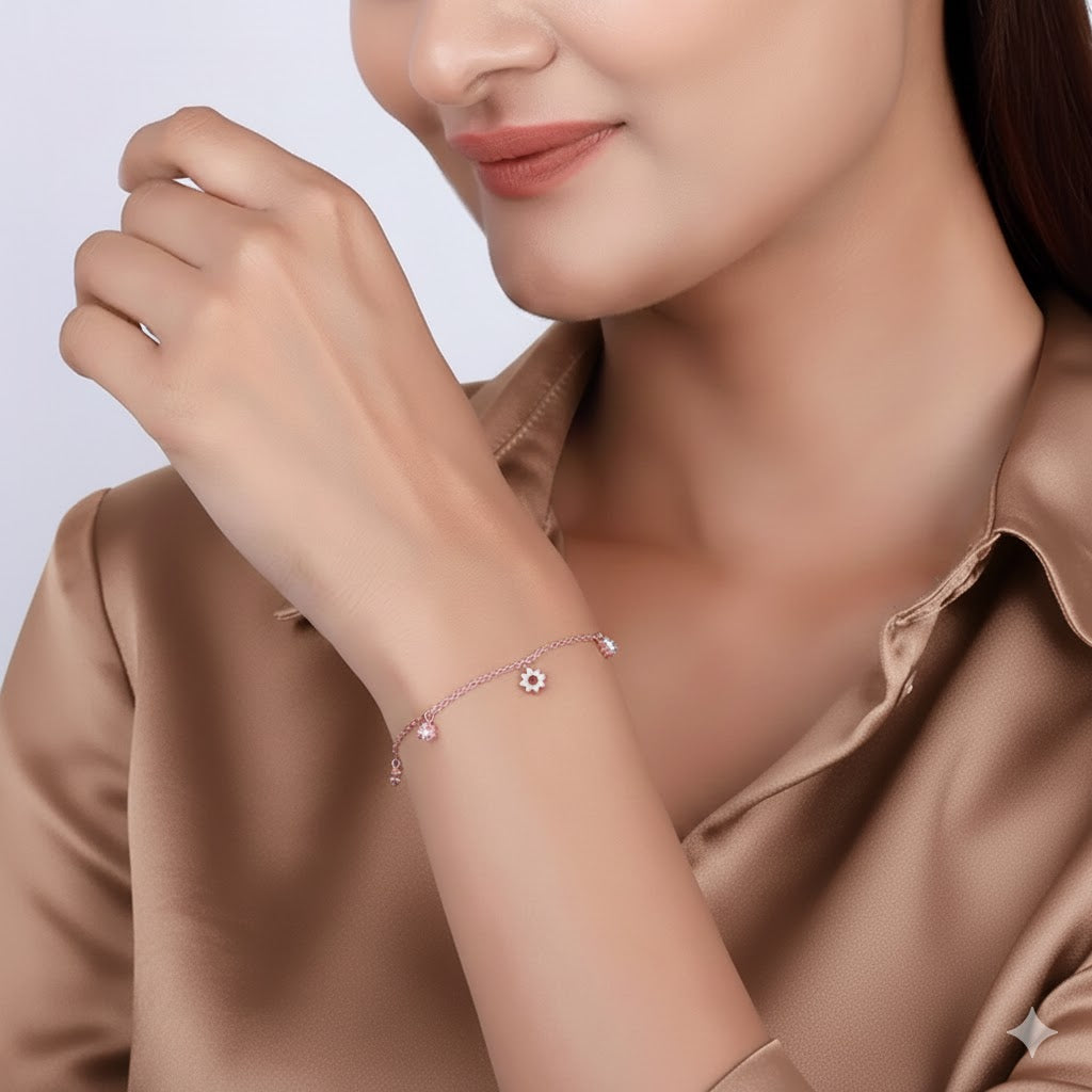 Delicate Rose Gold Floral Charm Bracelet"