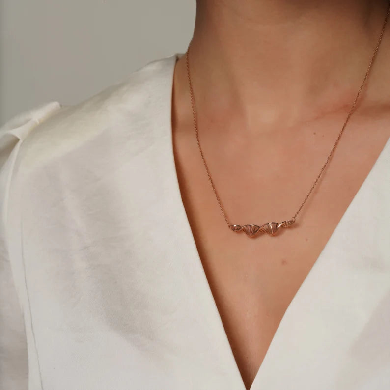 Add a modern and meaningful touch to your jewelry collection with this beautiful gold DNA wave pendant necklace.