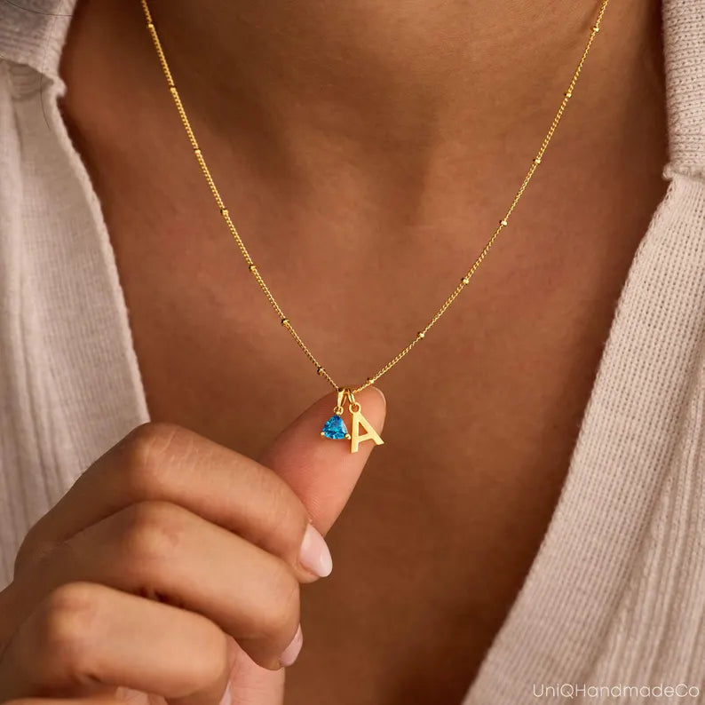 Add a touch of personal elegance to your everyday style with this beautiful gold initial necklace featuring the letter “A” paired with a delicate blue heart charm. Designed for a minimal yet meaningful look, this necklace is perfect for daily wear or special occasions.